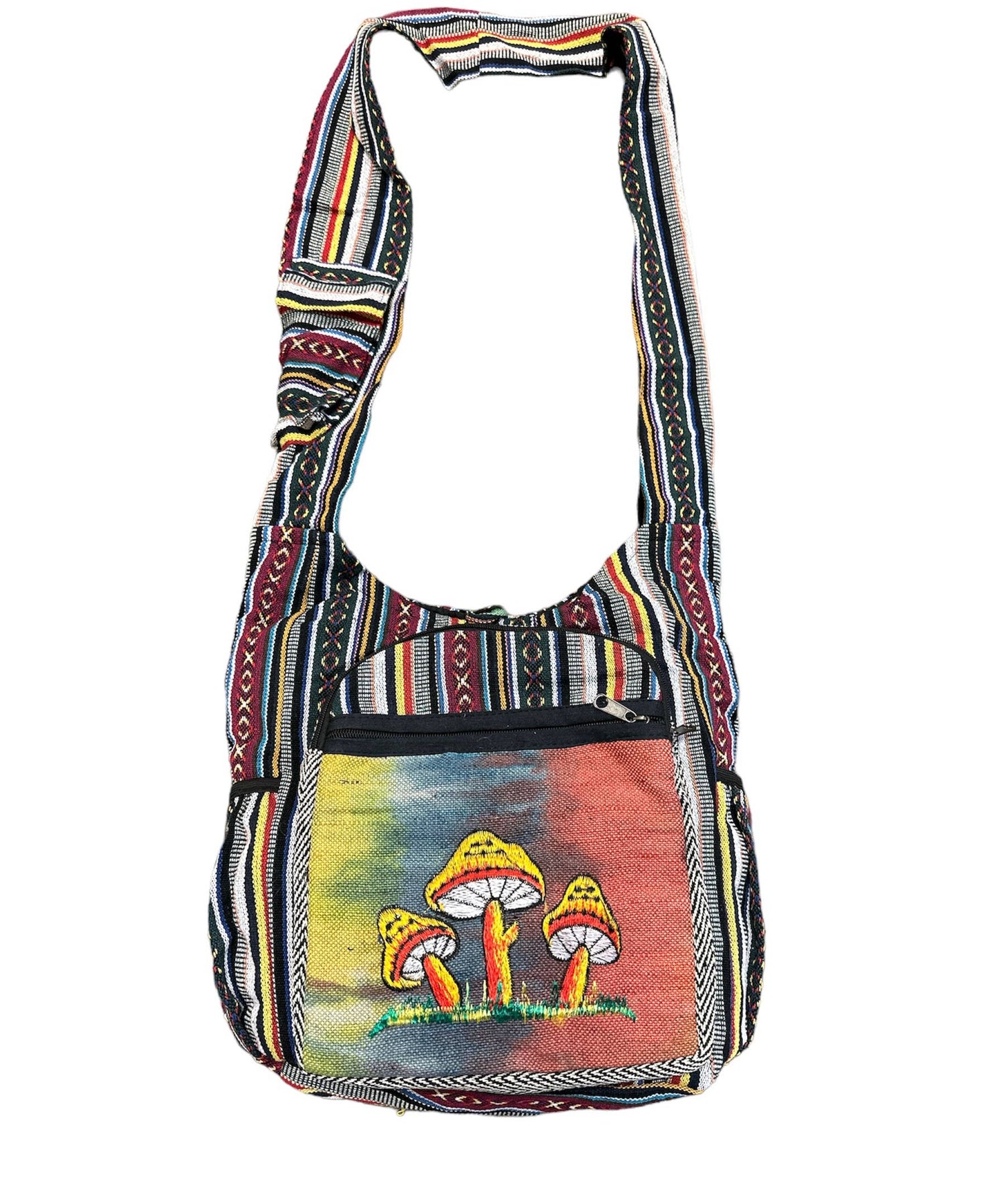 Cotton/ Hemp Tie Dye Zip Double Pocket Mushroom Gypsy Bag