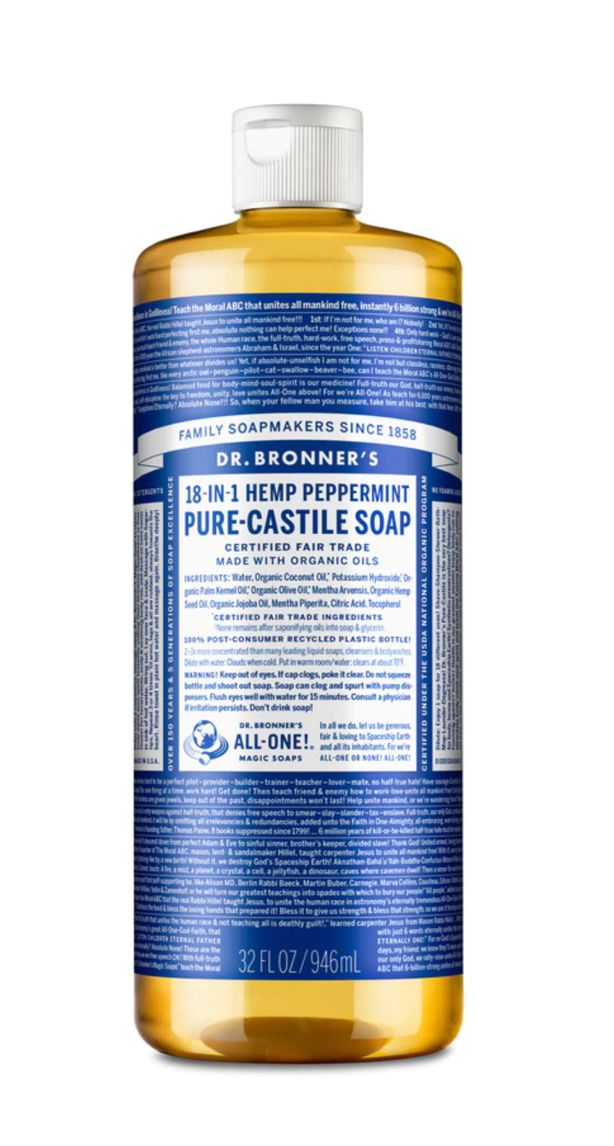 Dr Bronners Peppermint Hemp 18-in-1 Pure Castile Soap
