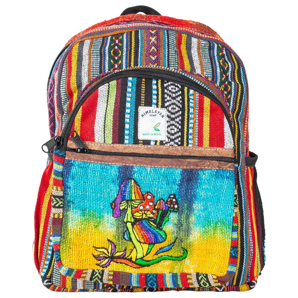 HEMP MINI BACKPACK WITH RAINBOW AND MUSHROOM